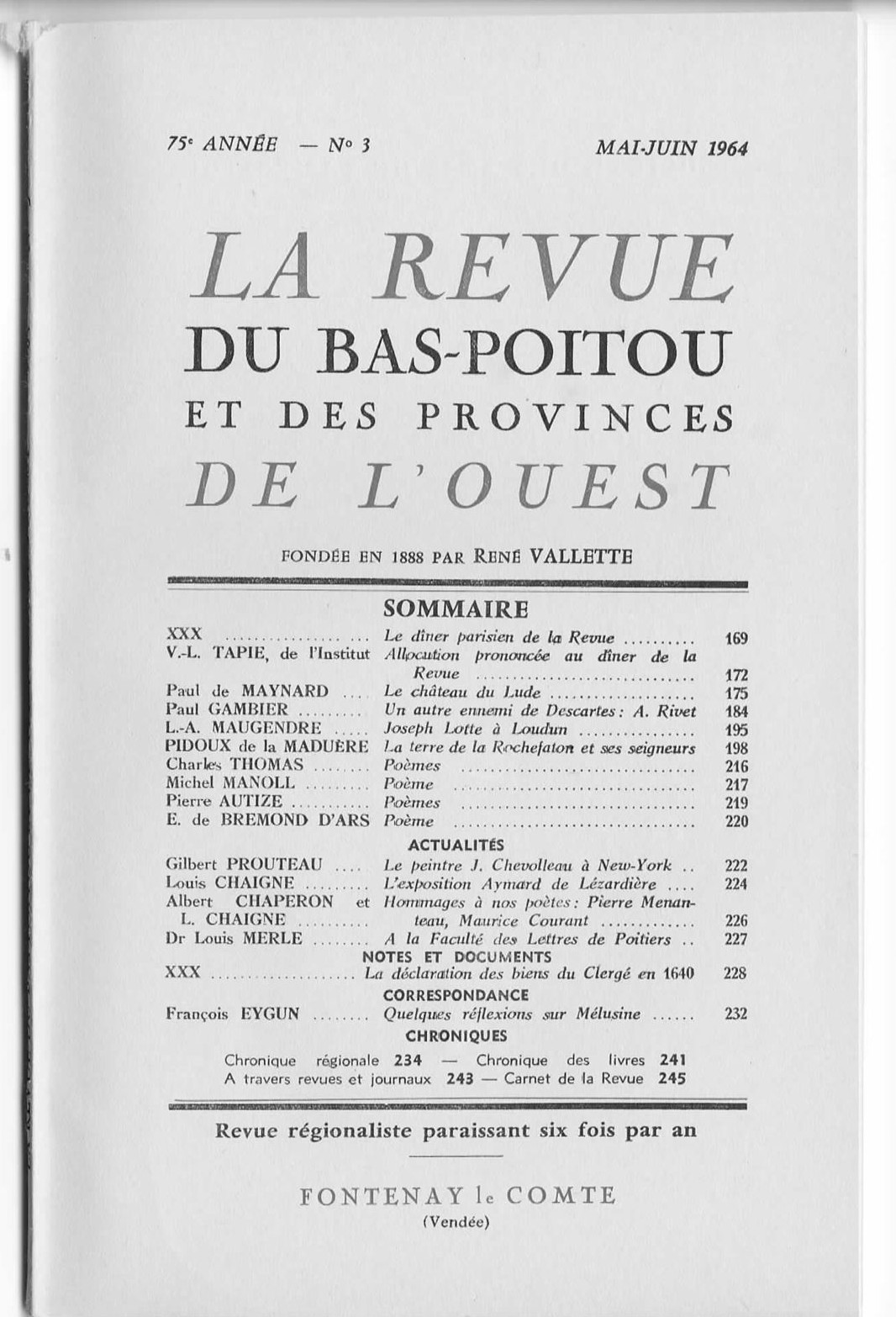 Revue du Bas-Poitou 1964 – 2eme livraison