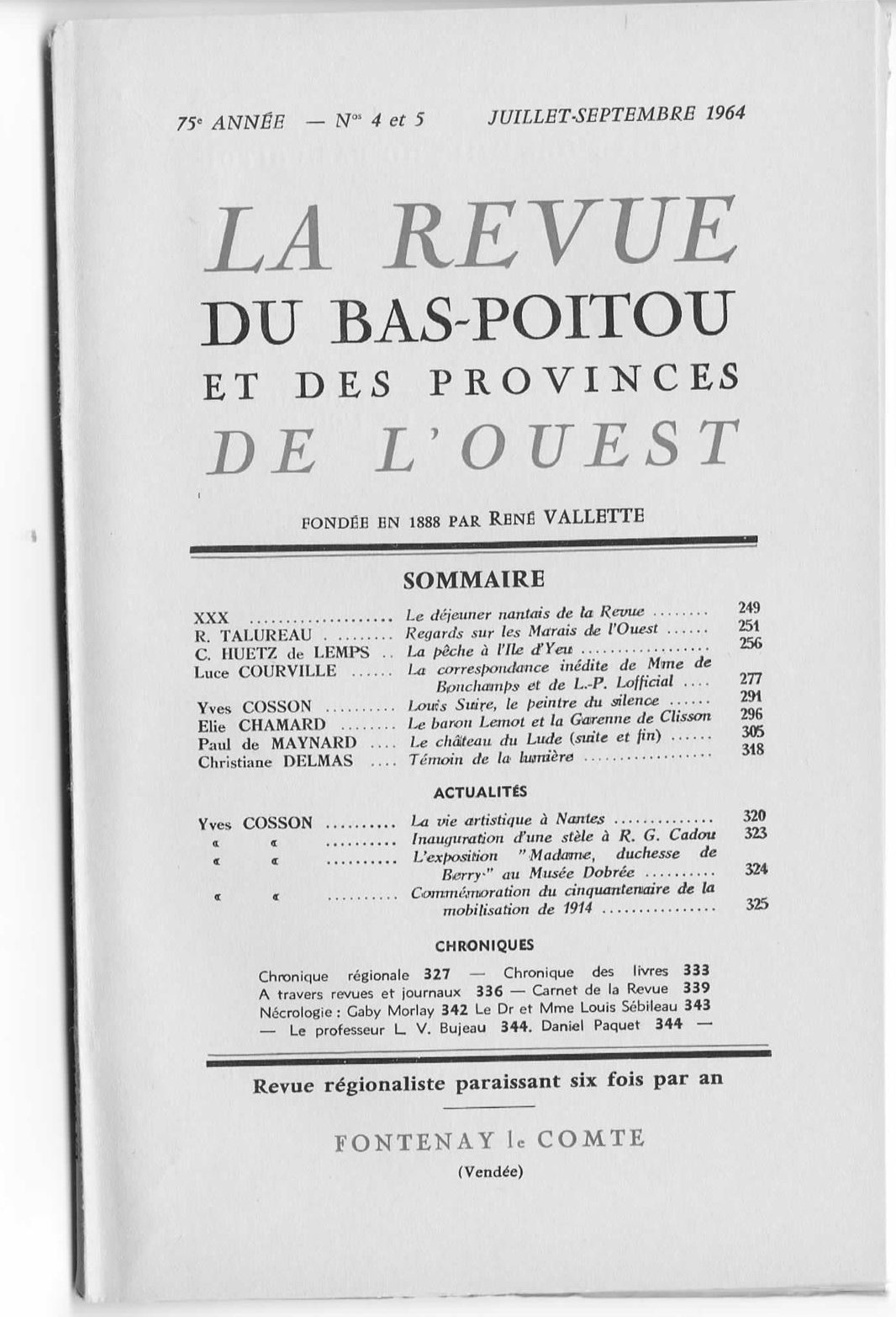 Revue du Bas-Poitou 1964 – 3eme livraison