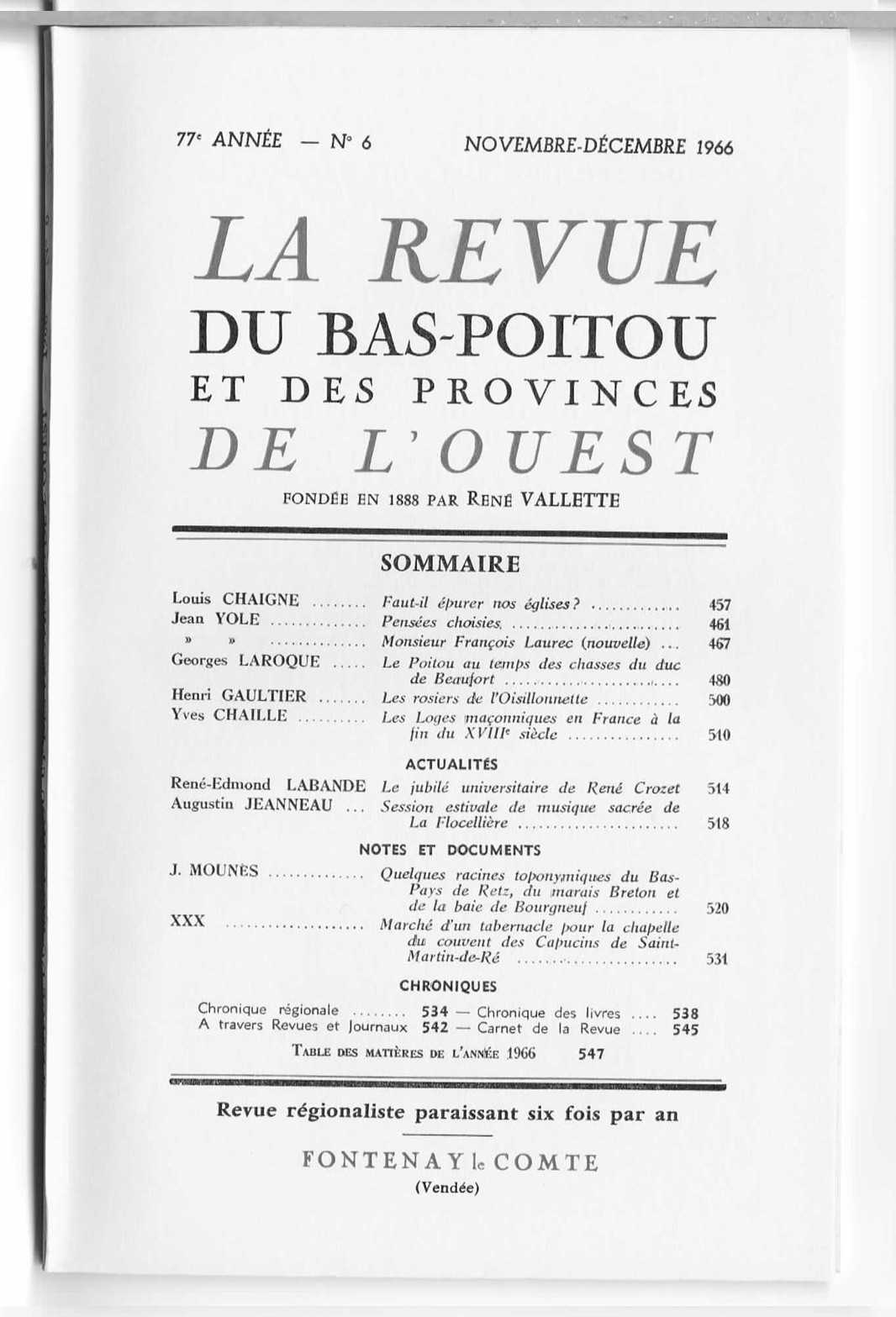 Revue du Bas-Poitou 1967 – 1ere livraison