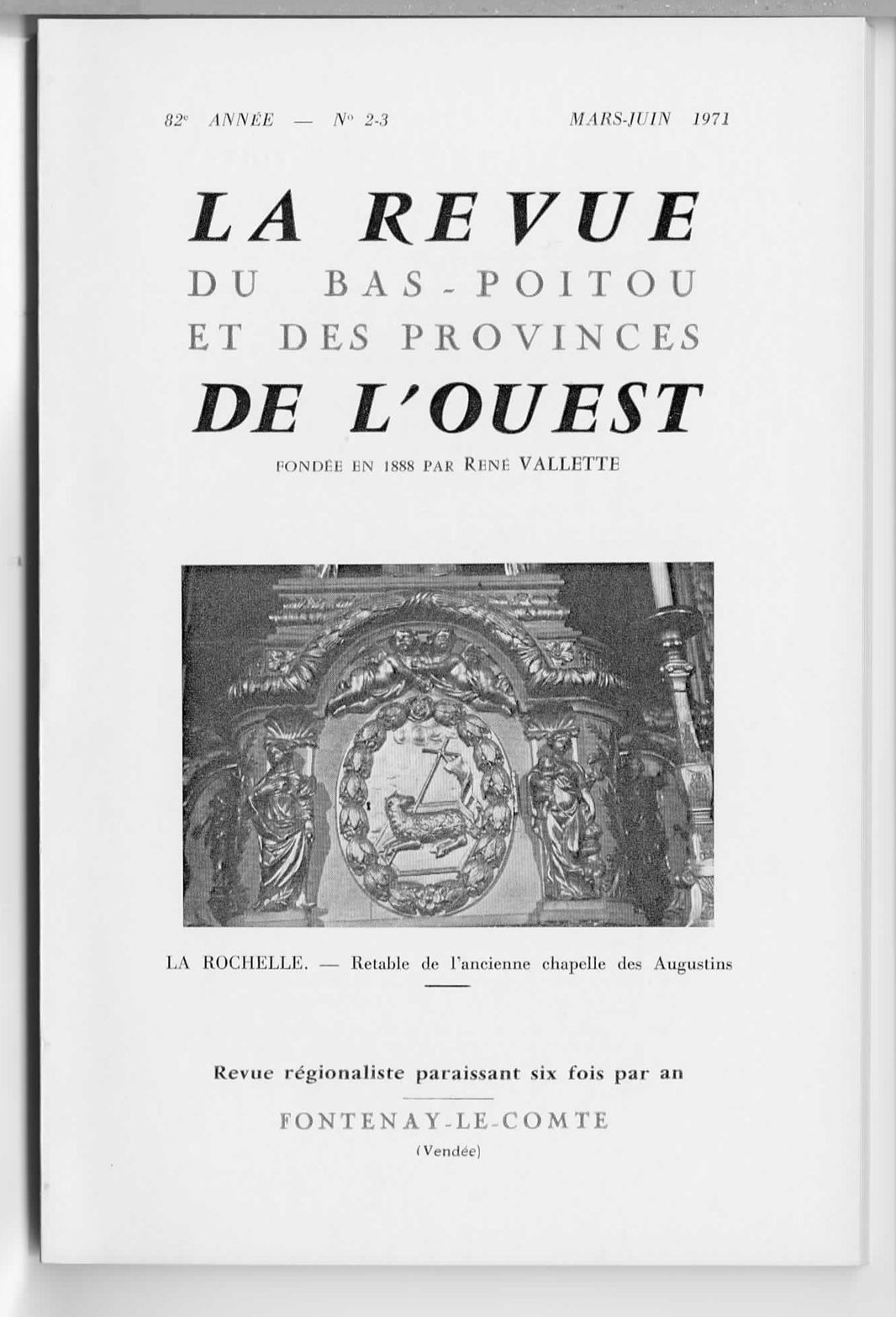 Revue du Bas-Poitou 1971 – 1ere livraison